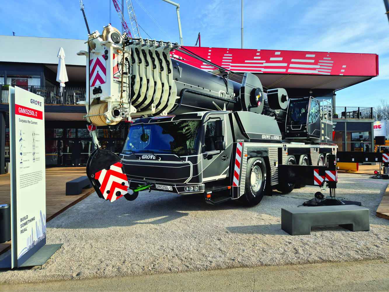 Offering a glimpse into its next generation of Grove all-terrain cranes is the prototype GMK5250L-2. Expected to be available for delivery in 2027, the five-axle model with a 250-ton capacity features new cabs on the superstructure and the carrier, the latest Manitowoc Crane Control System, CCS 2.0, and MAXbase 2.0, an improved version of the company’s variable outrigger positioning system.
