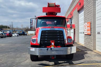 SELLING A USED MANITEX 35124C 35TON CAPACITY BOOM TRUCK, CRANE HAS A 5-SECTION 124’ PROPORTIONAL BOOM, 22’1” OUT-AND-DOWN OUTRIGGERS, INTERMEDIATE & FULLY EXTENDED OUTRIGGER CHARTS ARE STANDARD, INCLUDES HYDRAULIC FRONT STABILIZER, 2-SPEED PLANETARY HOIST W/ GROOVED DRUM & NEGATIVE DRAFT FLANGE, LMI W/ DIGITAL DISPLAY, OVERLOAD SHUTDOWN & INTERNAL BOOM LENGTH CABLE, AEROQUIP STC HYDRAULIC FITTINGS, 22’ X 8’ HEAVY DUTY WOOD BED & MORE! MOUNTED ON A USED 2025 FREIGHTLINER 108SD TRUCK, 370HP CUMMINS L9-9.3L TURBO DIESEL ENGINE W/ V.G.T. (1250 LB/FT TORQUE @ 1400 RPM, 72,000G.V.W.R., 40,000 LB TANDEM + 13,300 LB PUSHER, 20,000 LB FRONT STEER AXLE, ALLISON 6-SPEED AUTOMATIC TRANSMISSION, INTERAXLE TANDEM POWER LOCK, 40K 4-SPRING FLAT LEAF REAR SUSPENSION, 20K FLAT LEAF FRONT SUSP., REINFORCED INNER FRAME, A/C, CRUISE, 60GAL ALUMINUM TANK. APPROX. 3,900 MILES!